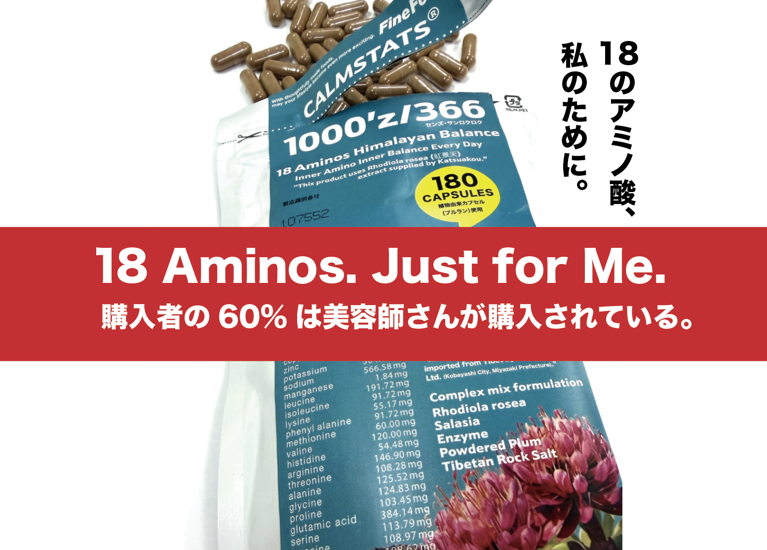 私たちが大切にしているのは、自然のめぐみをそのまま生かすこと。1000’z/366は、高山植物「紅景天(こうけいてん)の根に含まれる18種類のアミノ酸をバランス良く配合しています。