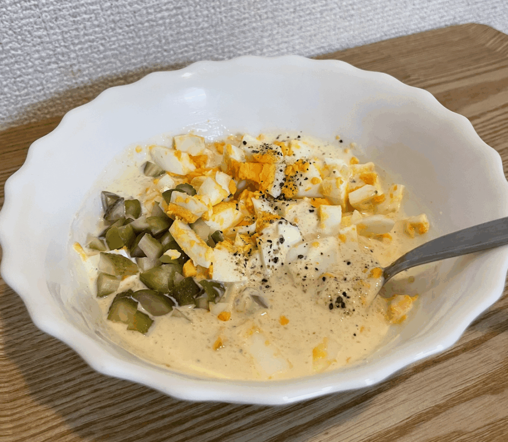 ・🥚 卵 1個(ゆで卵にして、5ミリサイズ位に刻む)