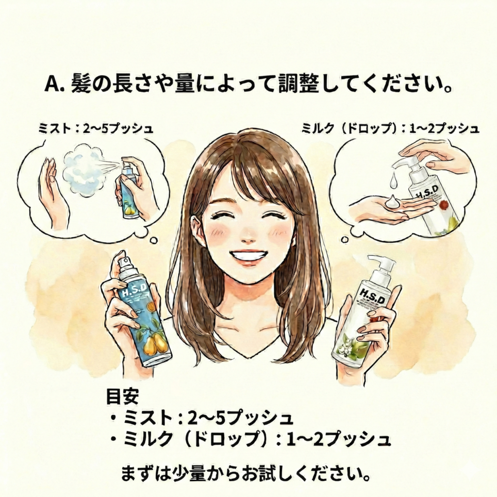 - ミルク(ドロップ):1〜2プッシュ