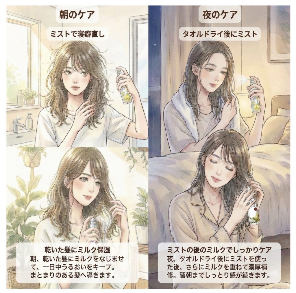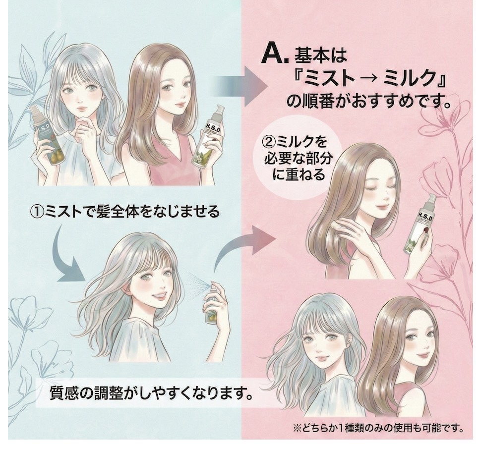 基本は「ミスト → ミルク」の順番がおすすめです。